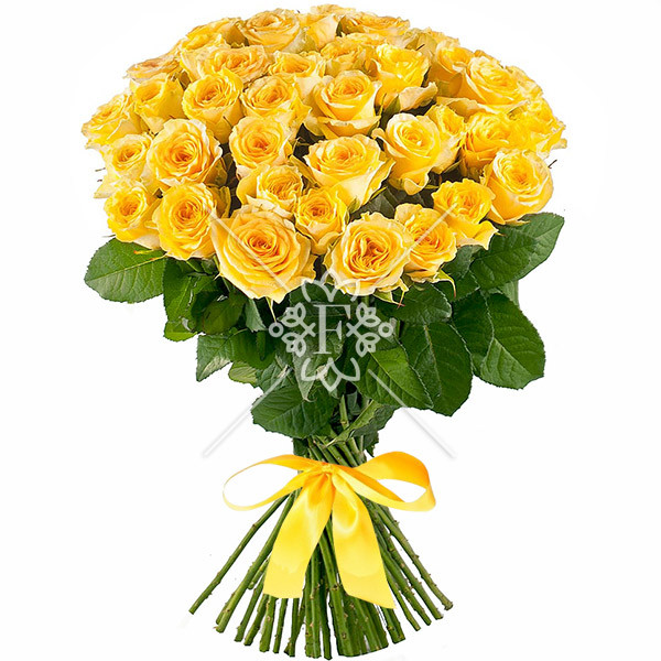 роза жёлтая - 51 шт., упаковка, лента.